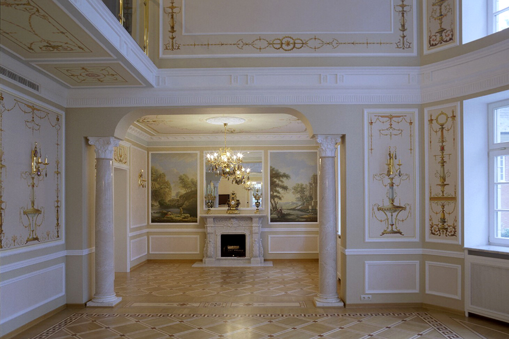 Без лепнины сложно обойтись, когда планируется помещение в барочном стиле. В парадных залах Дворцов бракосочетаний, роскошных ресторанах и банкетных залах, холлах гостиниц гипсовые фризы – крупные, массивные, фигурные – будут уместны всегда. По-прежнему актуальна классическая цветовая гамма – все оттенки белого и позолота.